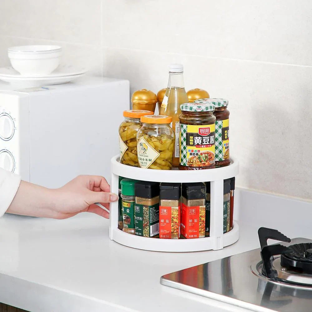 Conveniente de qualquer direção; este carrossel conveniente de 2 camadas de 360 graus é muito adequado para armários ou contadores.