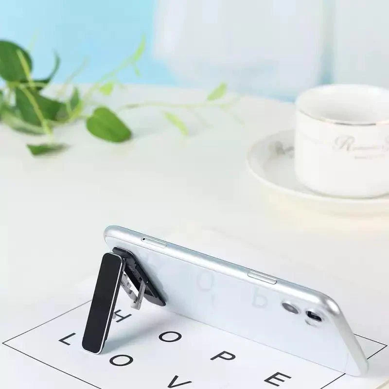 O suporte pode ser colador na própria capinha ou diretamente no celular.