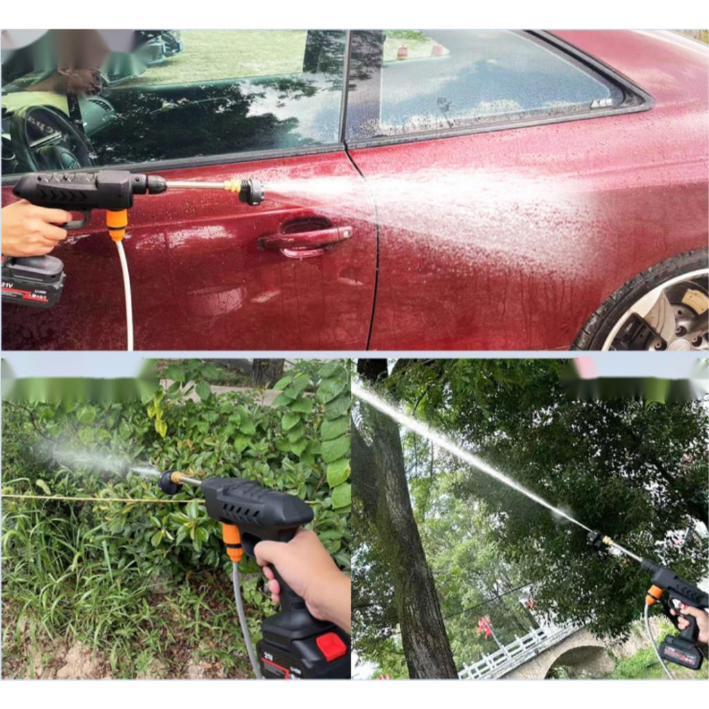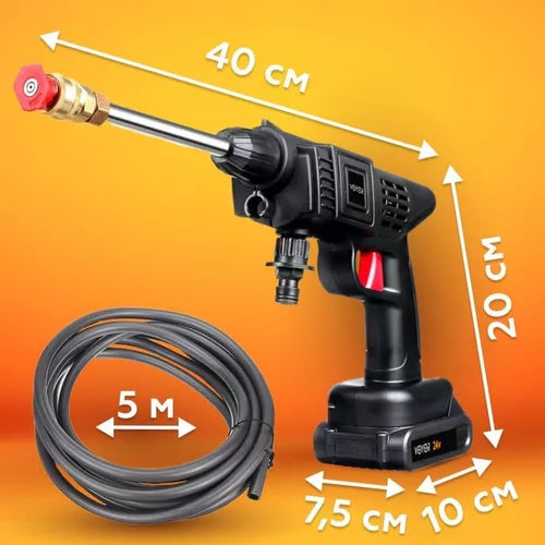 Pressão Poderosa: Mesmo sendo sem fio, esta lavadora entrega uma pressão surpreendentemente forte, capaz de remover sujeira incrustada, musgo e manchas difíceis em segundos. Adequada para uma variedade de tarefas de limpeza em diferentes superfícies.
