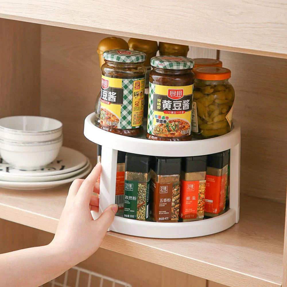 Conveniente de qualquer direção; este carrossel conveniente de 2 camadas de 360 graus é muito adequado para armários ou contadores.